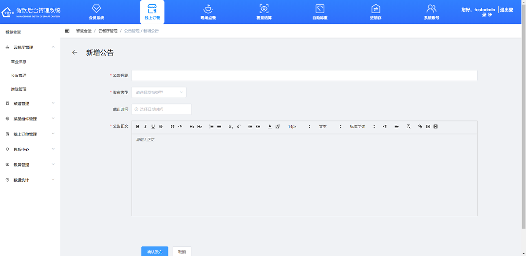 2) 如何設置發(fā)布食堂公告到云餐廳上