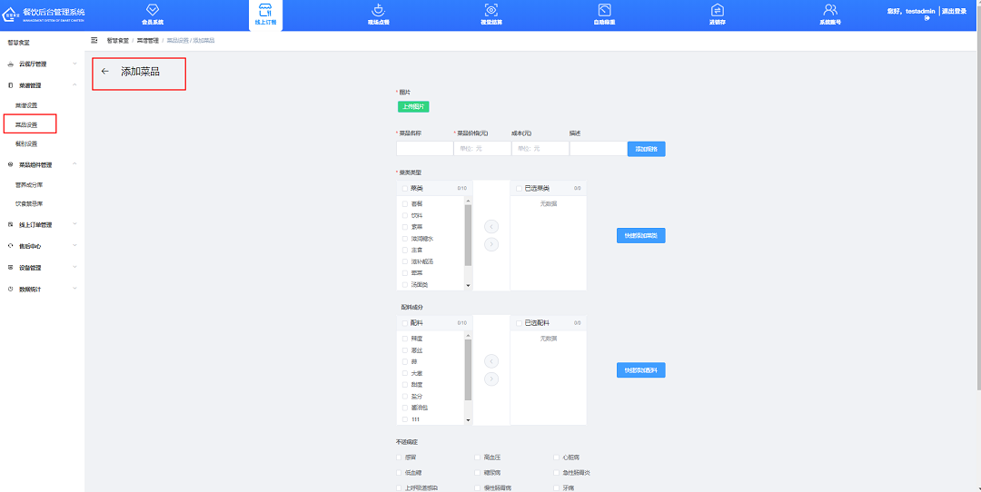 ④勾選不宜進食此菜品的特殊病癥(用于醫(yī)院),若無此需求可不勾選;
