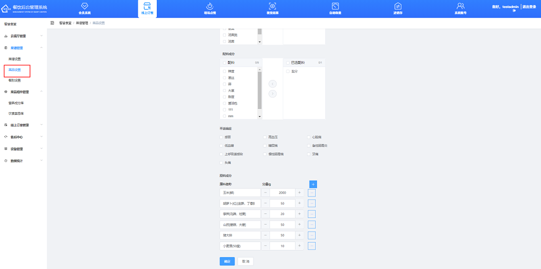 ③選擇菜品所屬的分類,選擇菜品搭配的配料;