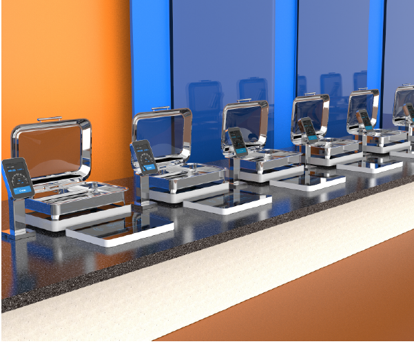 智能稱重結(jié)算臺一體化設(shè)計,基于餐飲云平臺為就餐者提供的無感支付、自助餐飲的智能化集成式系統(tǒng)。用戶綁定托盤后,通過托盤感應(yīng)臺讀取托盤信息,即可在多個智能秤上自助稱重取餐,取餐完成后通過空中支付進(jìn)行就餐結(jié)算。