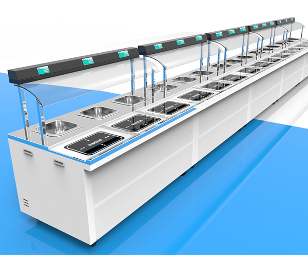 智能黑科技-無(wú)感智能稱重臺(tái),采用先進(jìn)科學(xué)的一體化設(shè)計(jì),集成了保溫菜盤、電子稱、感應(yīng)器、顯示屏等多個(gè)設(shè)備。系統(tǒng)自動(dòng)計(jì)算夾取菜品重量,實(shí)現(xiàn)無(wú)感快速結(jié)算和精確取餐。